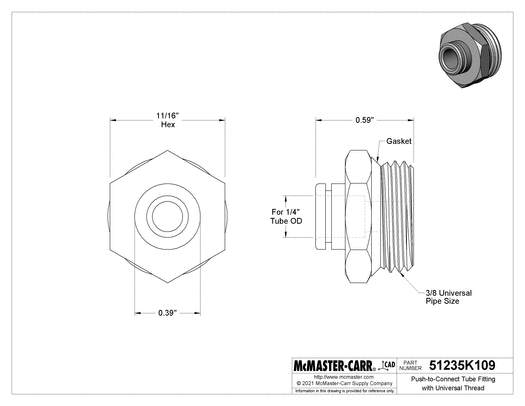 Push-to-Connect Tube Fitting with Universal Thread