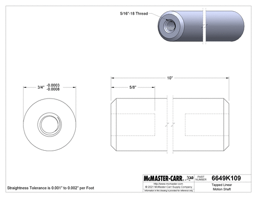 Tapped on Both Ends, 52100 Alloy Steel, 3/4" Diameter, 10" Long