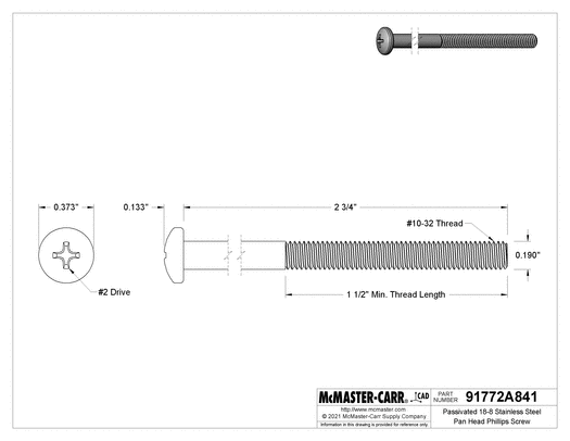Passivated 18-8 Stainless Steel Pan Head Phillips Screw