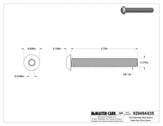 18-8 Stainless Steel Button Head Hex Drive Screw
