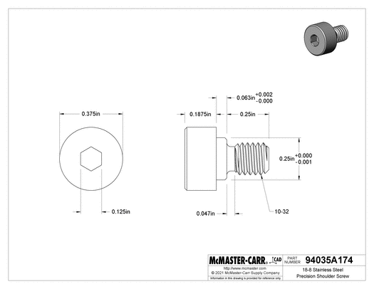 1/4" Shoulder Diameter, 1/16" Shoulder Length, 10-32 Thread