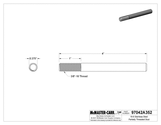 Stainless Steel Partially Threaded Stud