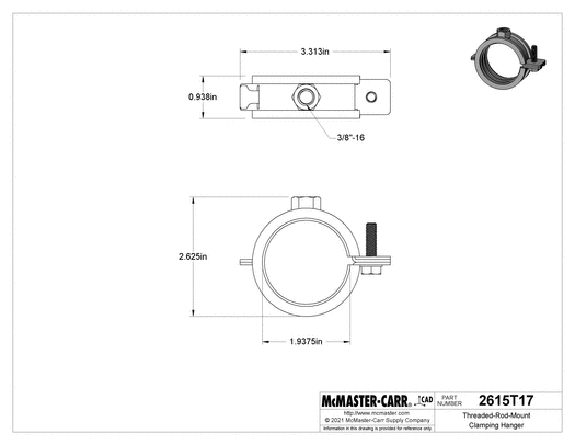 Vibration-Damping, Zinc-Plated Steel, 1-15/16" ID